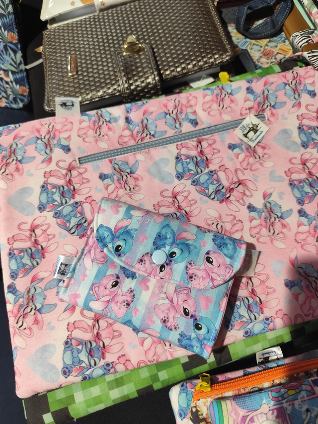 Carteira em tecido com divisão para moedas e notas ou cartões.